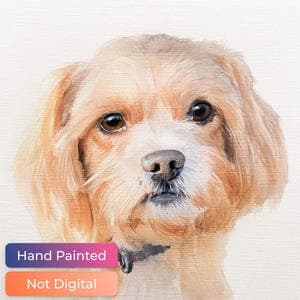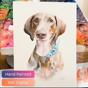 REAL HAND-PAINTED PET PORTRAITS — NOT DIGITAL PRINTS While most "watercolor" portraits on Etsy are digital prints, I create actual hand-painted watercolor art using professional Winsor & Newton watercolors, gouache, and acrylics on premium Canson paper. Each portrait is individually drafted and painted to capture your pet's unique spirit — whether it's dogs, cats, birds, horses, hamsters, bunnies, chickens, llamas, or any beloved companion.